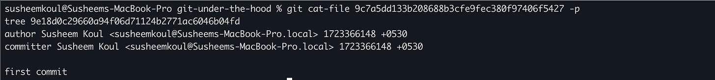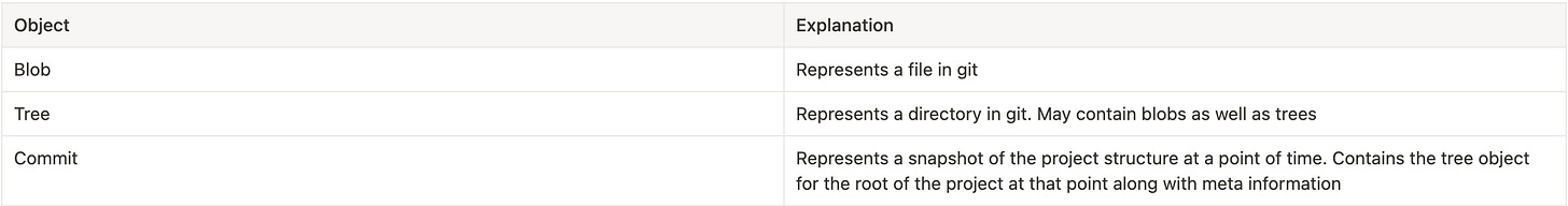 Because git stores entire objects and not diffs, checking out an older commit is relatively faster as we don’t have to “construct” the older variations of the files by applying diffs. But this does lead to increased storage consumption. Git gets around this as well by conditionally storing diffs if it makes sense. Read up on pack-files if you are interested or wait for the next article ;)