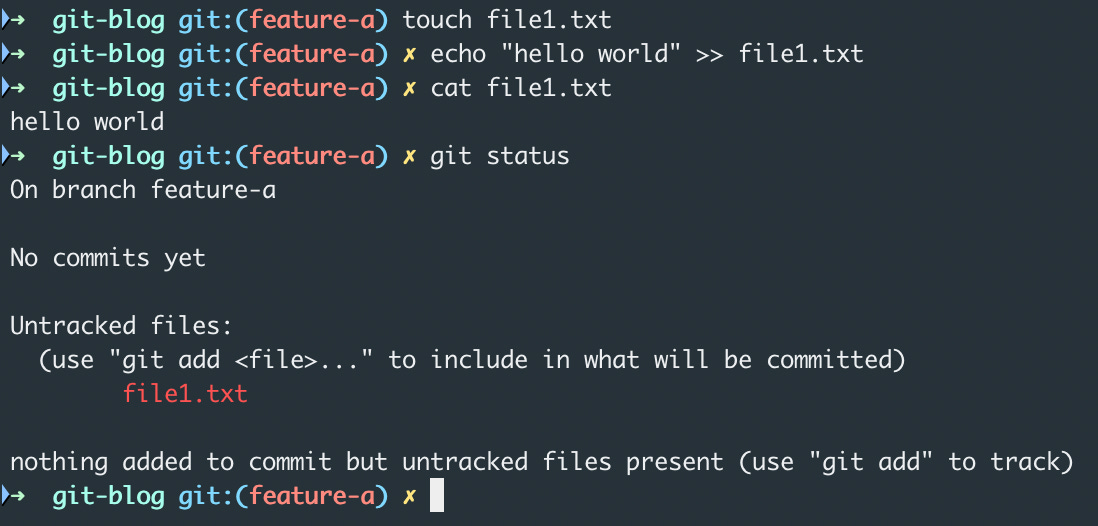 Now you have a local git tracked project. Before you start adding/modifying the files, we need to be on a branch that we actually want to push our changes on