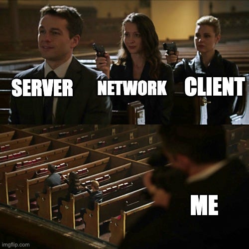 The network layer interacts with both the client layer on the client side and the server layer on the server side. It is responsible for taking client requests, sending them over the network to the server and parsing and routing the request to the correct handler on the server side. As such, we can talk about the network layer from two different lenses.